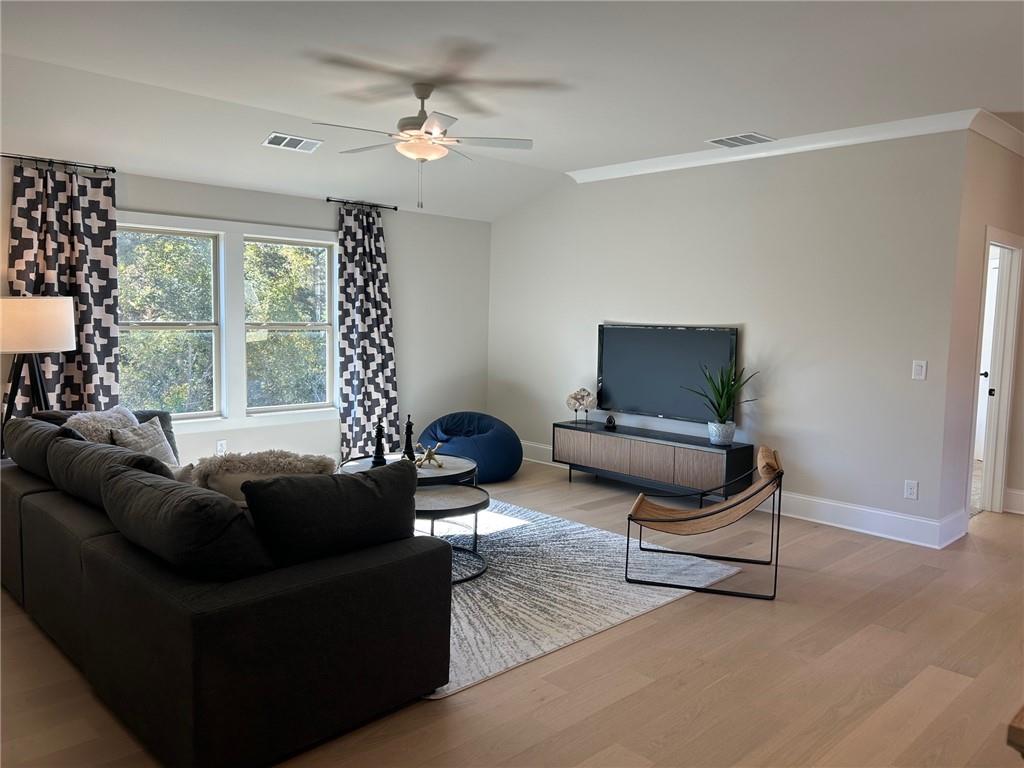 Penny Plan Lot 189: 5BR/ 4.5BA on Basement with *4* CAR GARAGE, MODEL home on a serene half-acre lake lot in the Sierra Lake community, This showstopper that redefines luxury living in Cumming, Georgia. This stunning new construction Penny Plan offers over 3987 square feet of thoughtfully designed space, including 5 spacious bedrooms, 4.5 baths, and a rare 4-car garage—perfect for car enthusiasts or multigenerational households. From the moment you arrive, the three-sided brick exterior and covered rear porch overlooking the tranquil community lake set the tone for a lifestyle of elegance and ease. Step inside to discover a home that blends sophistication with comfort. The main level features a private guest suite with full bath, a formal dining room, and a flexible living room or office ideal for remote work or quiet reflection. The heart of the home is the gourmet kitchen, complete with a coffee bar, walk-in pantry, and seamless flow into the fireside family room with built-in bookcases—a perfect space for cozy evenings or lively gatherings. Upstairs, a media room offers the ultimate retreat for movie nights or game days, while the spacious secondary bedrooms ensure everyone has their own space. Beyond the home itself, Sierra Lake offers a lifestyle that’s hard to beat. Residents enjoy access to resort-style amenities including a community pool, clubhouse, , playground, Dog Park and walking trails—all just a short stroll from your front door. And when it’s time to venture out, you’re less than 10 minutes from GA-400, Lake Lanier, top-rated schools, Northside Hospital, parks, dining, and shopping. This is more than a home—it’s a sanctuary where luxury meets location, and every detail is designed to elevate your everyday. Some file photos. **Price Reflect Current Promotion.***