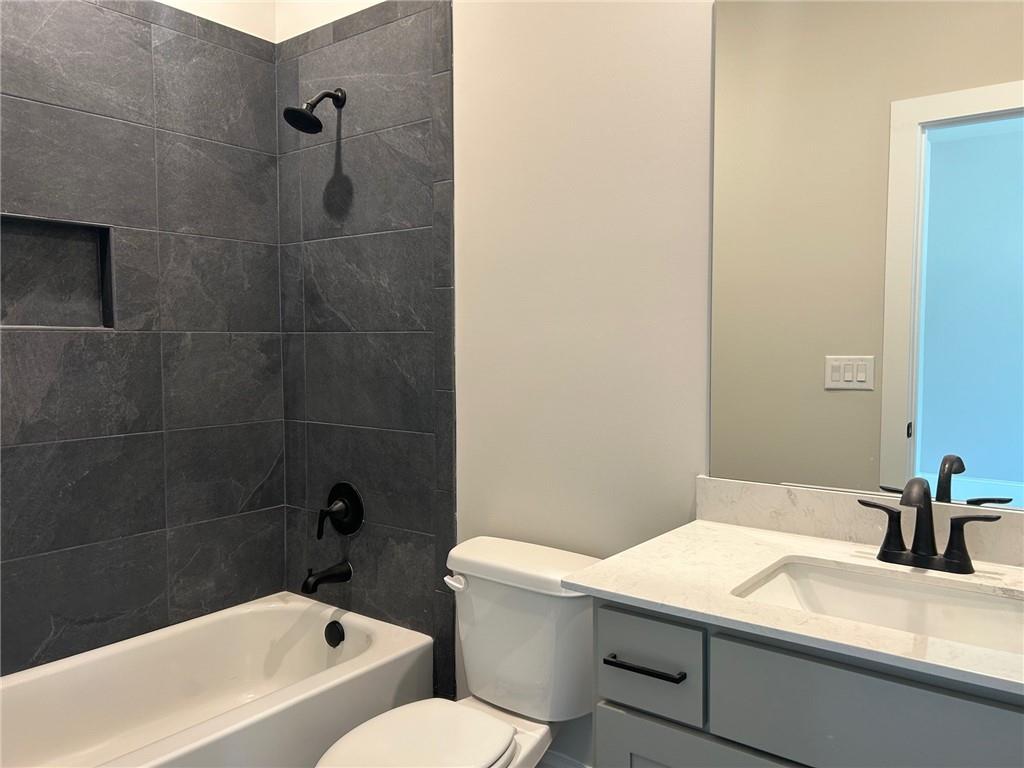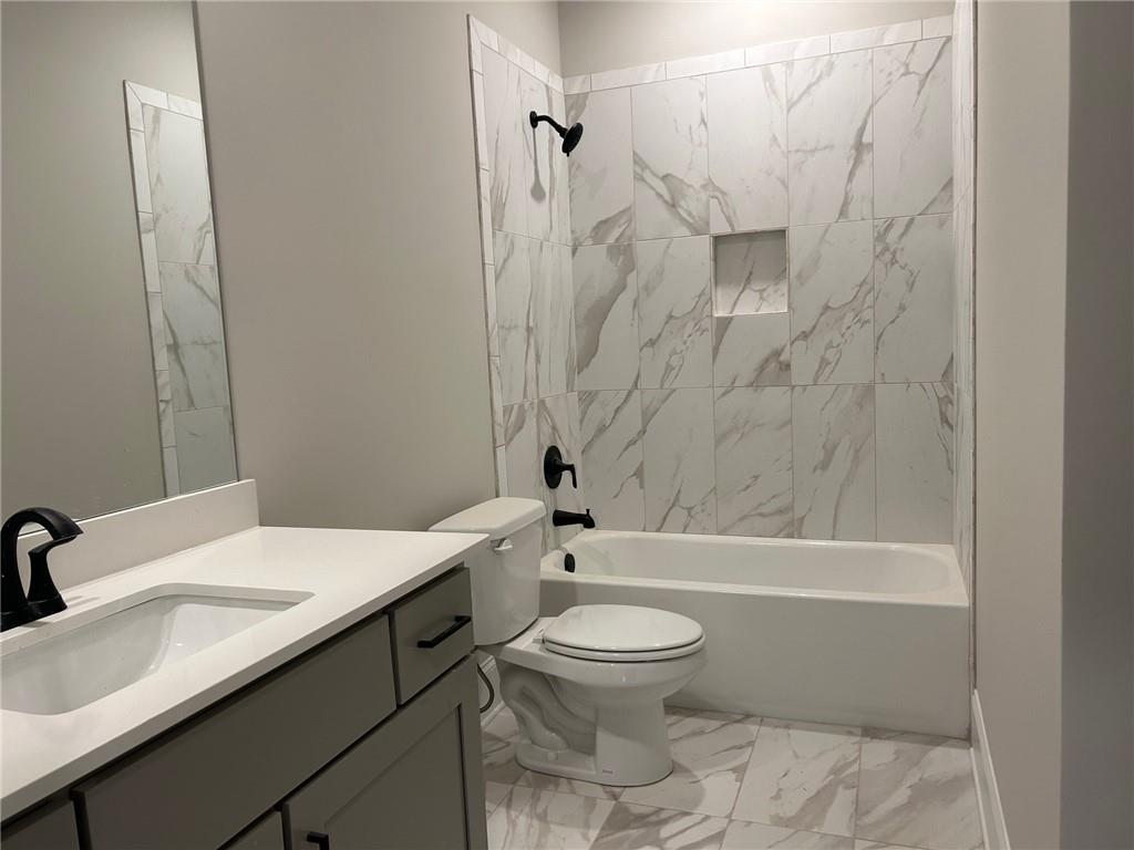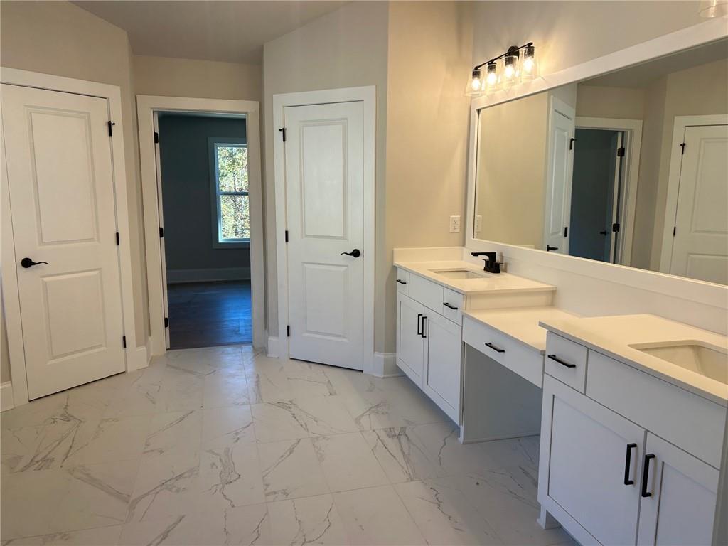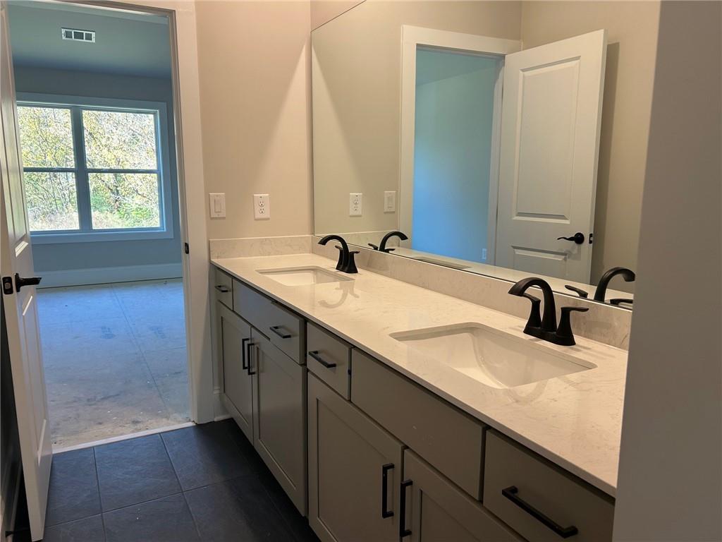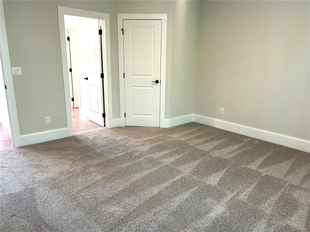CHARLESTON Plan Lot 60B: 5BR/4BA, This exquisite NEW CONSTRUCTION in the gated Sierra Lake community offers a rare blend of elegance, functionality, and resort-style living. Situated on a level lot in both the front and back, the home features a spacious four-car garage and resides within the highly acclaimed North Forsyth School District—just minutes from Lake Lanier and GA 400. The main level welcomes you with a soaring two-story foyer, a refined coffered dining room, and a versatile study or flex space. A generously sized guest suite with a walk-in closet and full bath provides comfort and convenience. The chef’s kitchen is a true showpiece, boasting 42" cabinetry, a sleek island with ample seating, a farmhouse-style gas cooktop, wall oven, vented microwave, and a continuous stainless-steel sink with disposal. A walk-in pantry and stylish tile backsplash complete the culinary experience. Rich hardwood floors flow throughout the main level and up the elegant wood staircase, leading to a spacious media room and four additional bedrooms. Two bedrooms share a well-appointed Jack and Jill bath, while another offers a private ensuite. The luxurious owner’s suite is a sanctuary, featuring a comfort-height double vanity, oversized walk-in shower, separate soaking tub, linen closet, and private water closet. Step outside to enjoy your morning coffee on the covered back deck, surrounded by the tranquility of a lake community that includes a fishing dock, scenic walking trails, playground, pool, clubhouse, pavilion, fire pit, dog park, and play field. The gated entrance closes at 6:30 PM daily, and a professionally decorated model home is open for viewing. *Price reflects current promotion. Some photos may be file images.