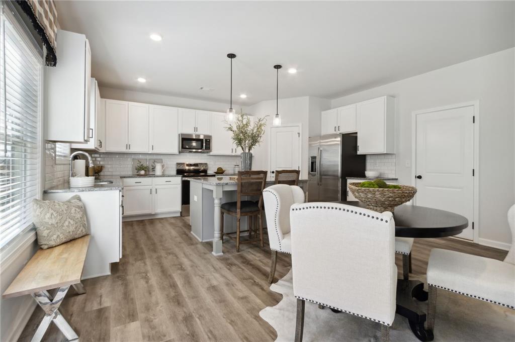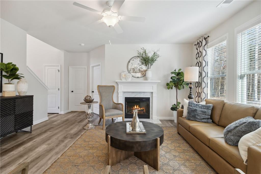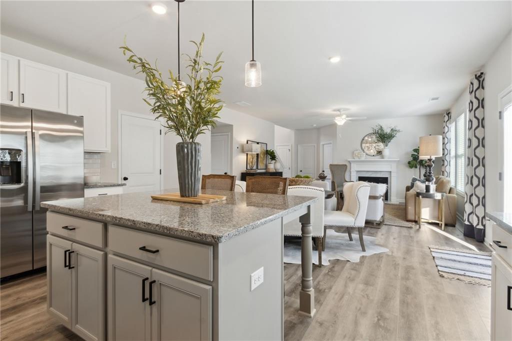 Cartay Plan Lot 1A: 5BR/ 3BA Sunny Hill is nearing completion and only a limited number of homes remain! Exterior highlights of this home include a welcoming front porch and the popular bay tower. In unison, these features deliver excellent curb appeal and a statement upon arrival. This home has been thoughtfully curated with a layout that balances open living with defined spaces. Luxury vinyl plank flooring runs throughout the main living areas. The Dining Room and a separate Office/ Living Room sit just off the Foyer. These spaces provide flexibility for entertaining, working from home, or everyday living. The Great Room and Kitchen are positioned at the rear of the home with wooded views. The Kitchen features granite counters, tile backsplash, stainless steel appliances, an oversized island, and a walk-in pantry. A main-level Bedroom and full Bath with shower offers a comfortable setup for guests/ multigenerational living. Upstairs, the flex room anchors second floor living spaces. This room is generously sized and perfect for movie nights or casual gatherings. The oversized Owner’s Suite is a true retreat and includes a Master Bath with double sink vanity, soaking tub, separate tile shower, and large walk-in closet. Sunny Hill is zoned for the Mountain View school cluster. Freeman’s Mill Elementary, Twin Rivers Middle, and Mountain View High all rank in Georgia’s top 20 percent. I-85 is just five minutes away. Shopping, dining, and entertainment are close by, with the Mall of Georgia and local attractions within ten minutes. Only four homes remain at Sunny Hill. These are the final opportunities. Schedule a showing today! (File photos have been included in this listing, some finishes and views may vary).